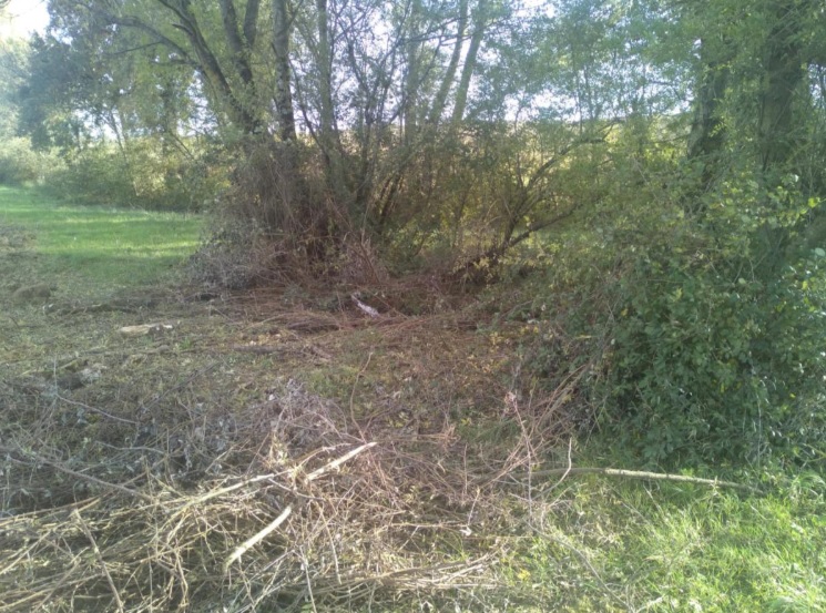 2ème mare : débroussaillage et bûcheronnage sur une berge de la mare (2026), bûcheronnage et retrait des arbres tombés dans la mare (2026), désenvasement manuel lors d’un chantier bénévole (en 2025)